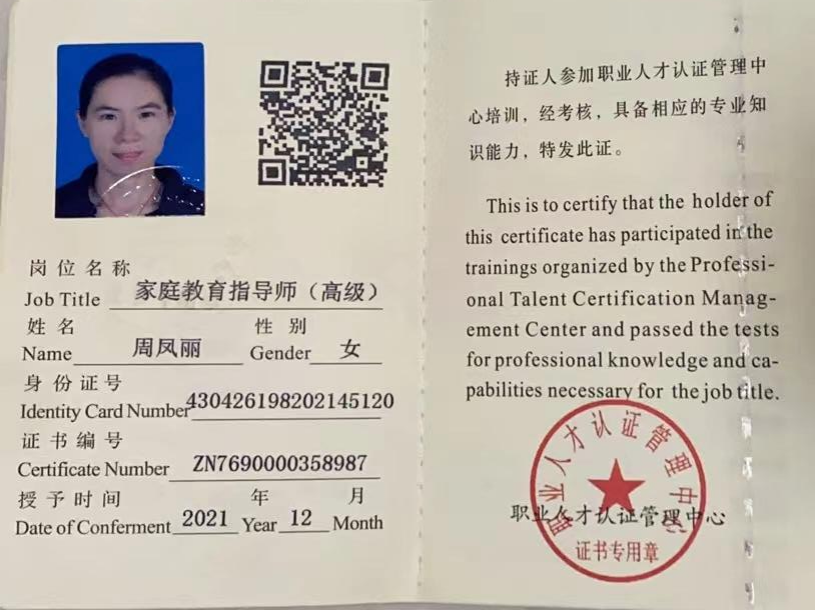 家庭教育指导师证(高级)