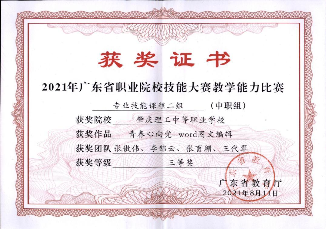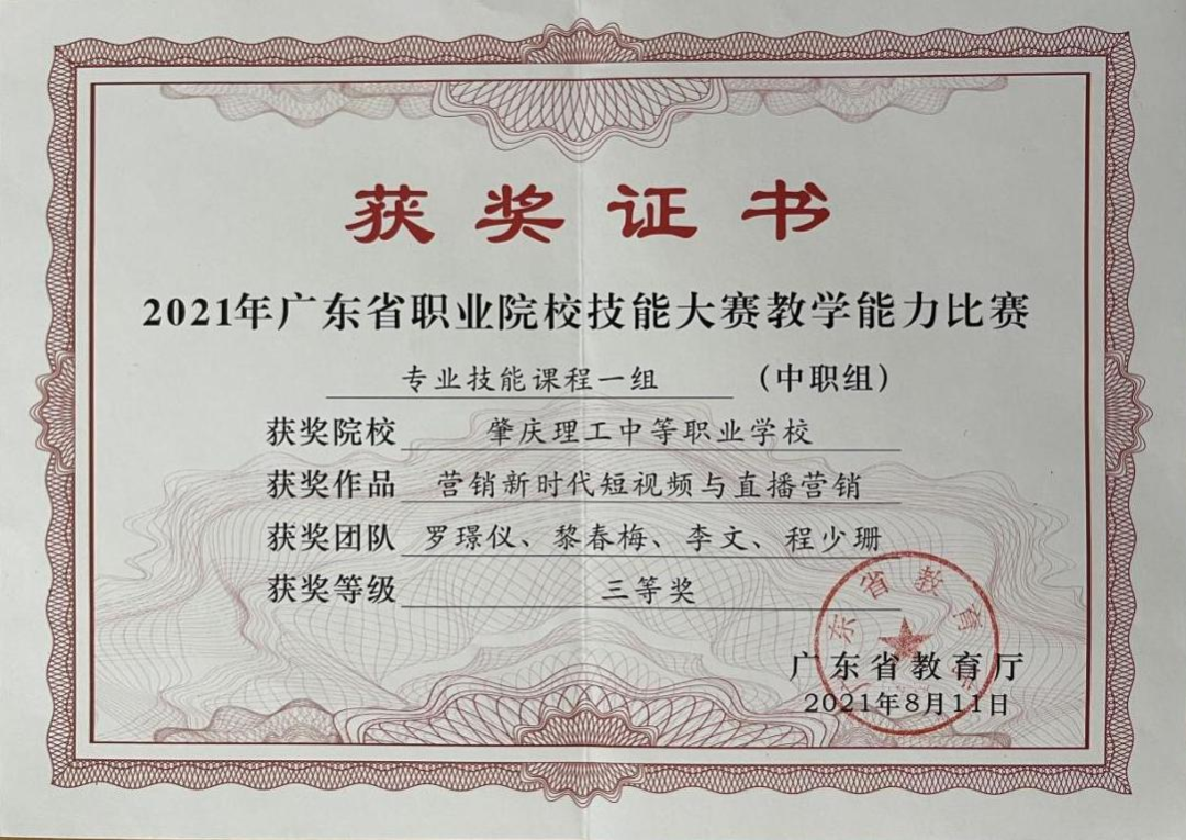 2021年肇庆市中职教师教学能力大奖一等奖