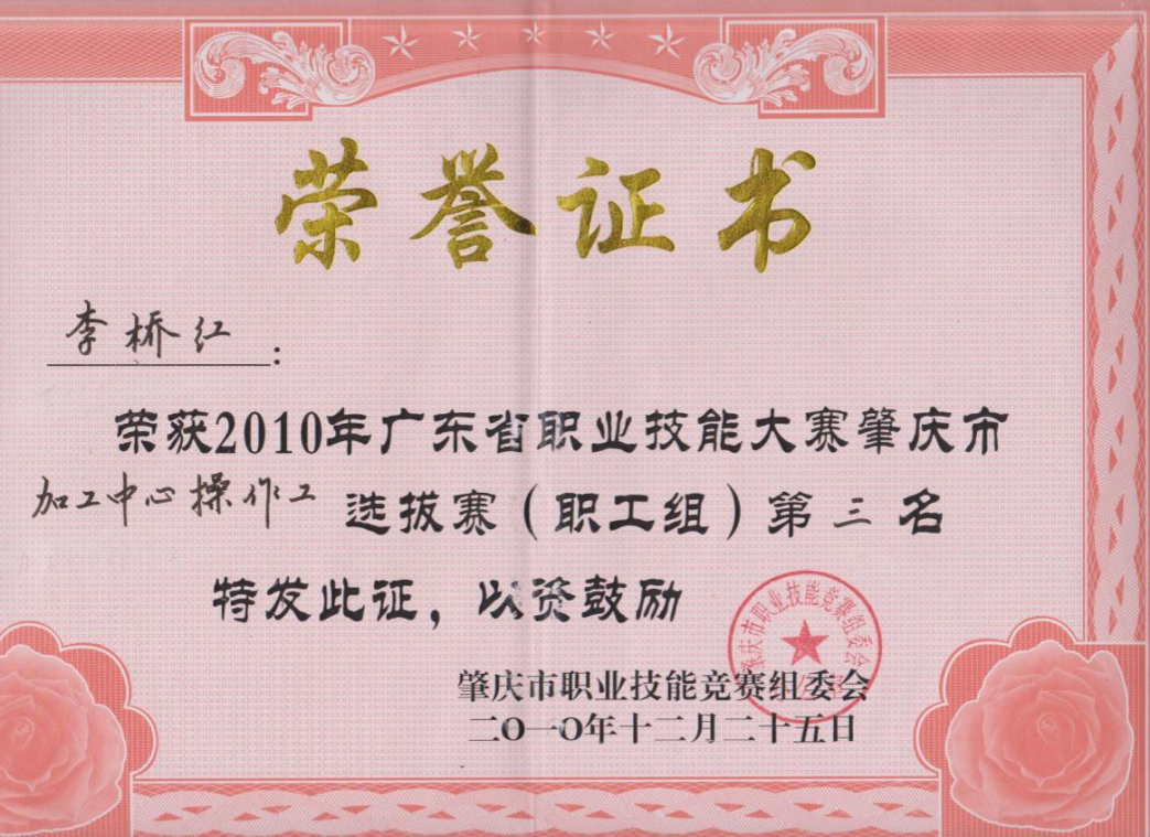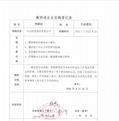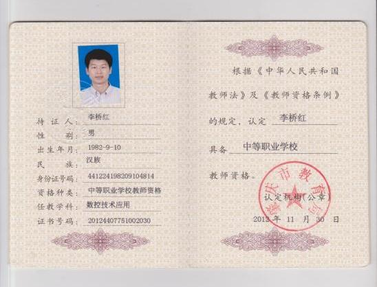 李桥红,男,2007年入职肇庆理工中等职业学校,一直从事中职数控技术应用专业教学工作,担任机械部部长,带领同事们进行精品课程建设,从教多年,有丰富的教学经验和深受学生喜爱的教学方法,课堂教学兢兢业业,坚持以学生为中心,落实三教改革,创新教学方法,实现高效课堂。总是以饱满的热情、求真务实的工作态度,圆满完成学校安排的各项教育教学任务,受到了领导、同事的一致好评,得到学生家长及社会的广泛认可,连续多年年终考核被评为“优秀”。