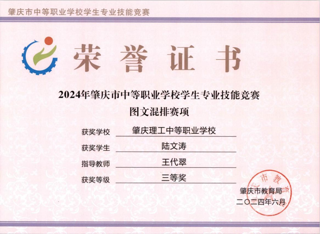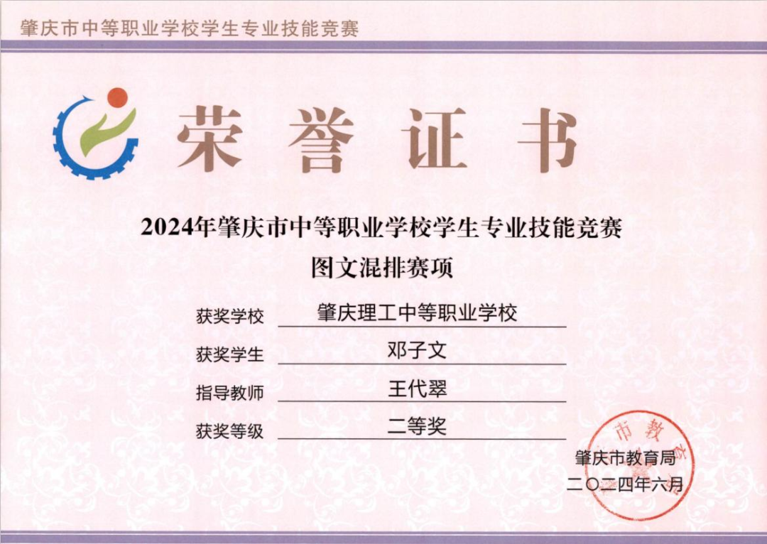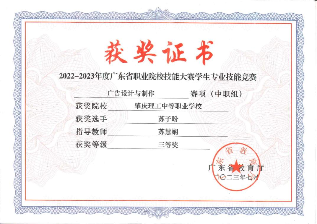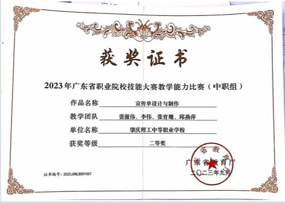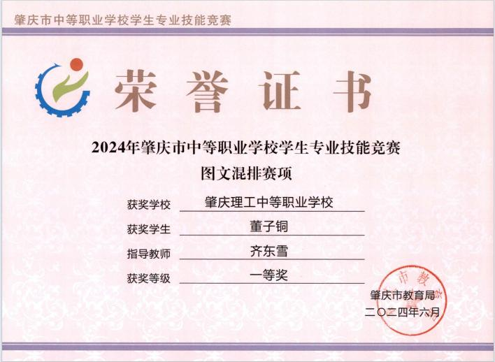 (2)2024年获肇庆市学生技能竞赛《图文混排》赛项指导老师二、三等奖