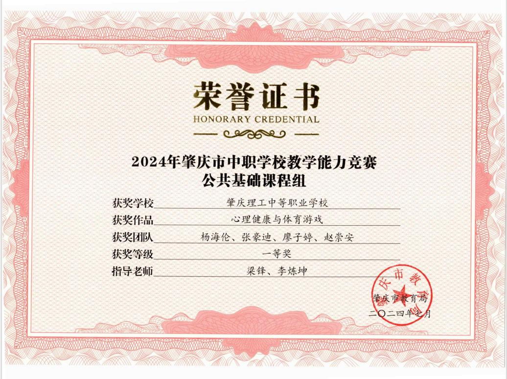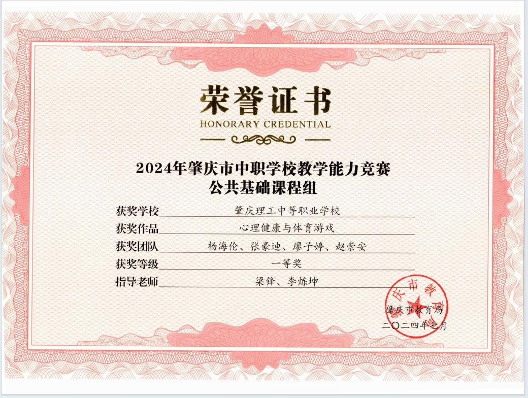 (1)2024年肇庆市中职学校教学能力竞赛公共基础课程组一等奖