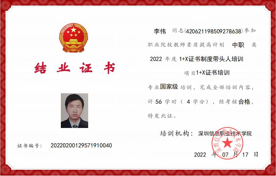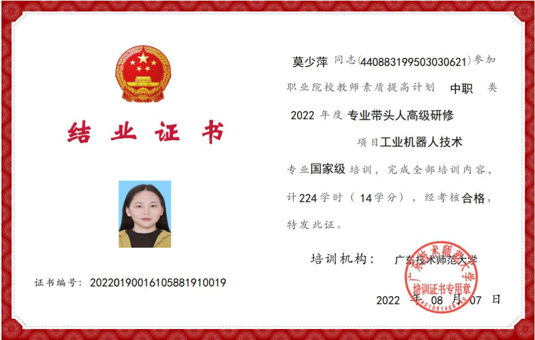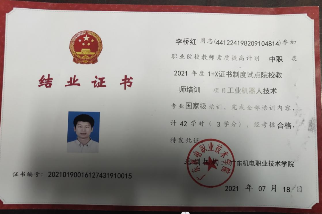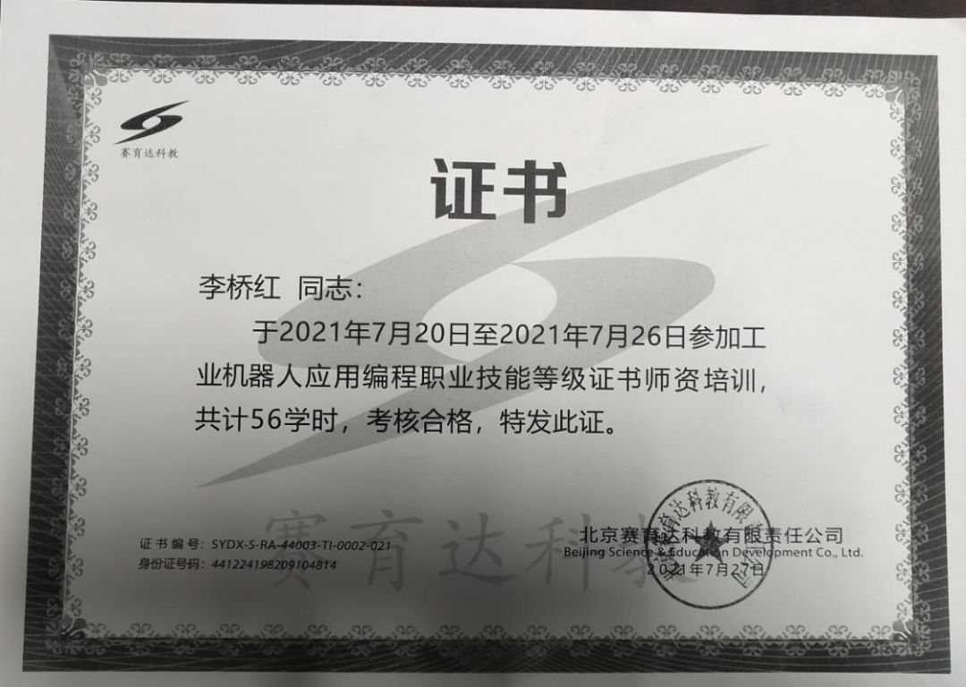 作为一名专业教师,他积极参加各类培训如:国家级《1+X证书制度试点院校教师培训》、《工业机器人应用编程职业技能等级》,先后考取了数控车床高级,数控铣床一级等资格证书,以多种形式加强理论学习,提升业务能力。
