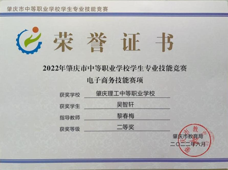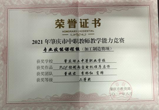 (5)2021年肇庆市中等职业学校学生专业技能竞赛二等奖