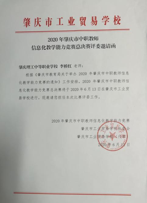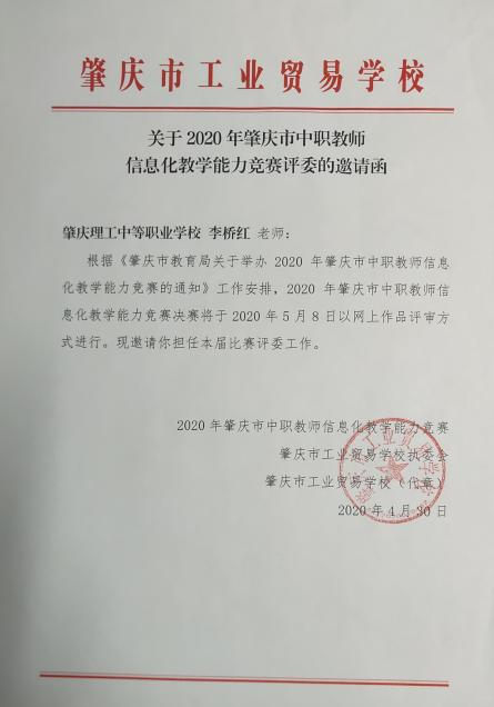 1.2020年肇庆市中职教师信息化教学能力竞赛评委