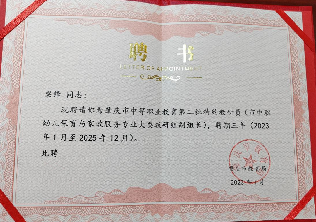 3.肇庆市中等职业教育第二批特约教研员