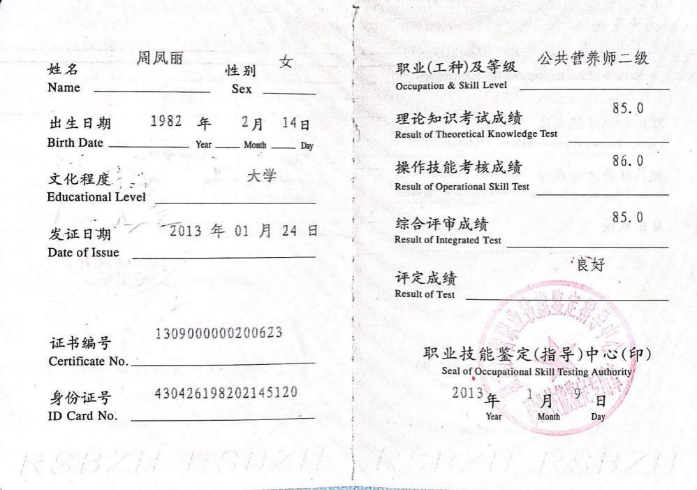 公共营养师(二级)证