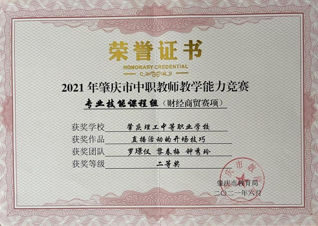 2.2021年获得肇庆市青年教师说课大赛二等奖
