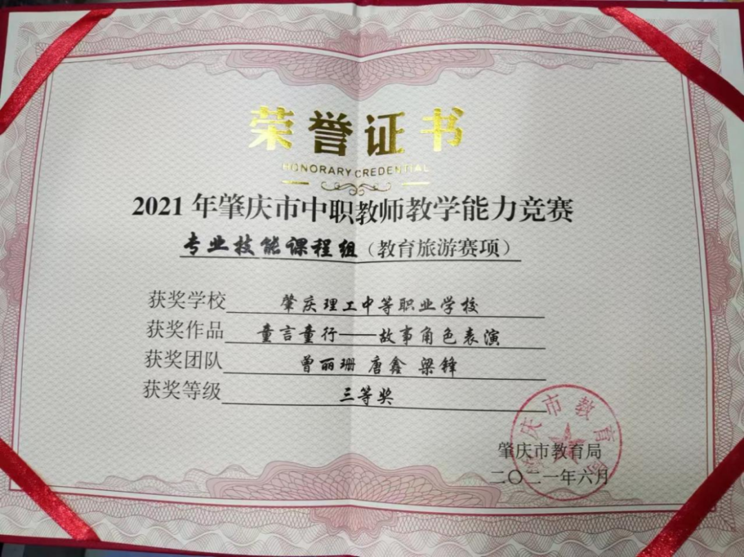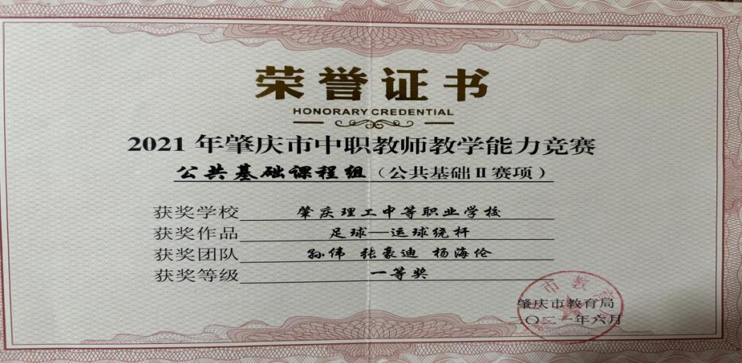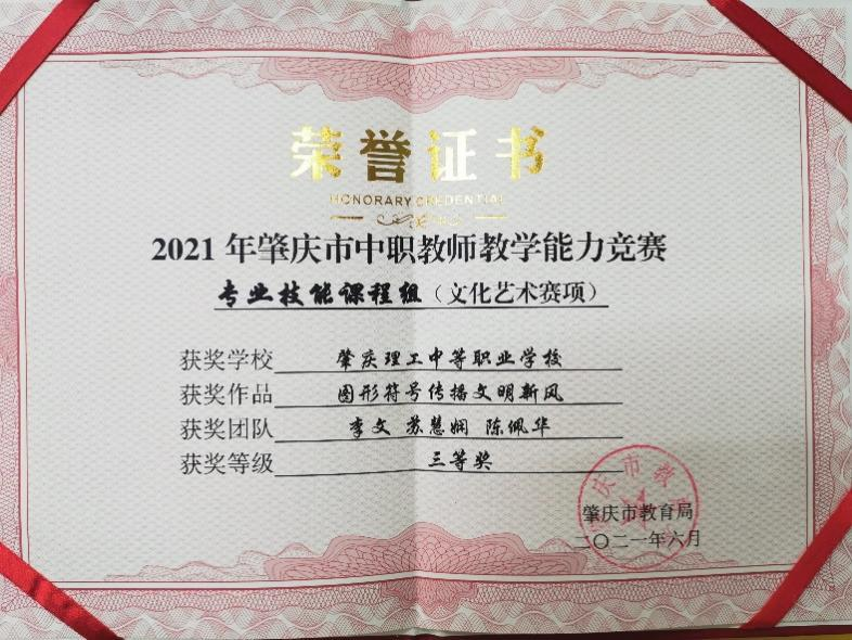 (1)2021年获得肇庆市教师教学能力大赛决赛一等奖