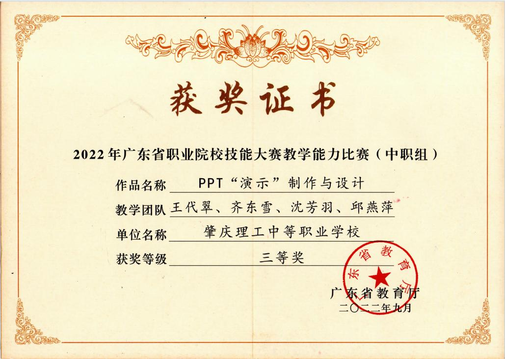 (2)2022年广东省职业院校技能大赛教学能力比赛(中职组)三等奖