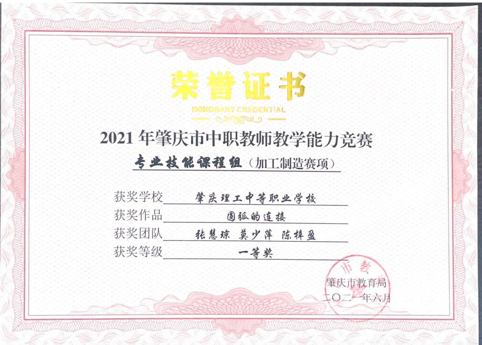 (4)2021年肇庆市中等职业学校学生专业技能竞赛一等奖