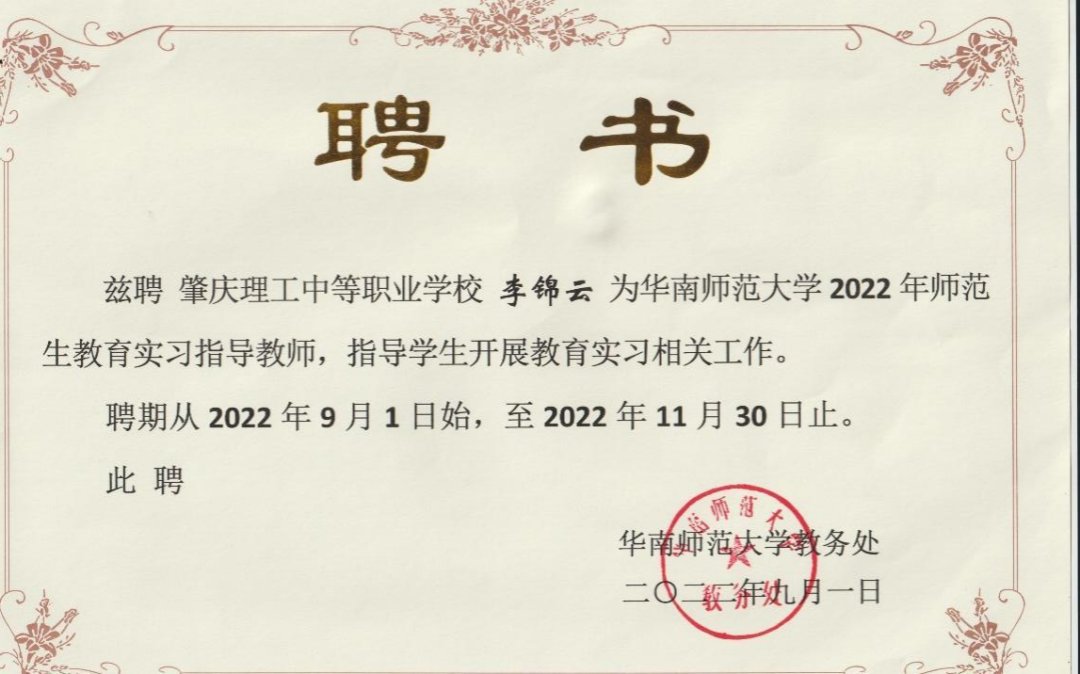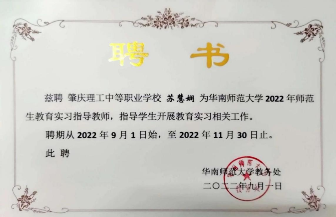 2022年9月-11月,华南师范大学实习生指导教师