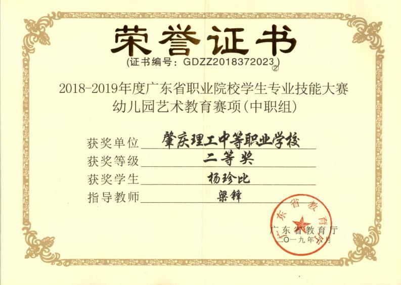 (2)2018-2019年度广东省职业院校学生专业技能大赛幼儿园艺术教育赛项(中职组)二等奖