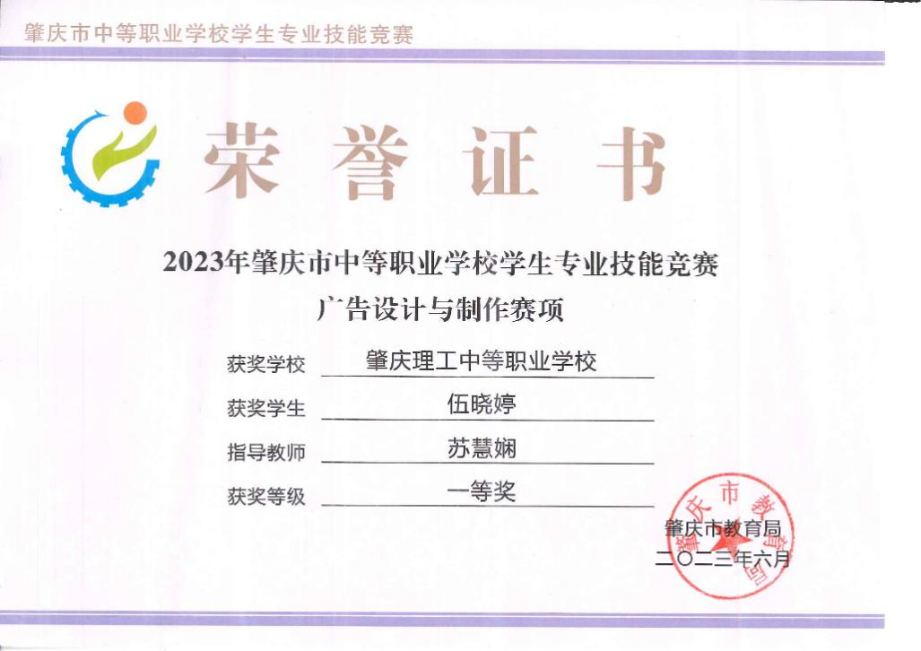 (3)2023指导学生参加肇庆市学生技能大赛广告设计与制作一等奖